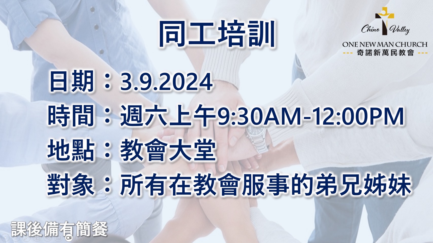教育事工:由Jonathon賴曉光牧師,負責教會裝備輔導。